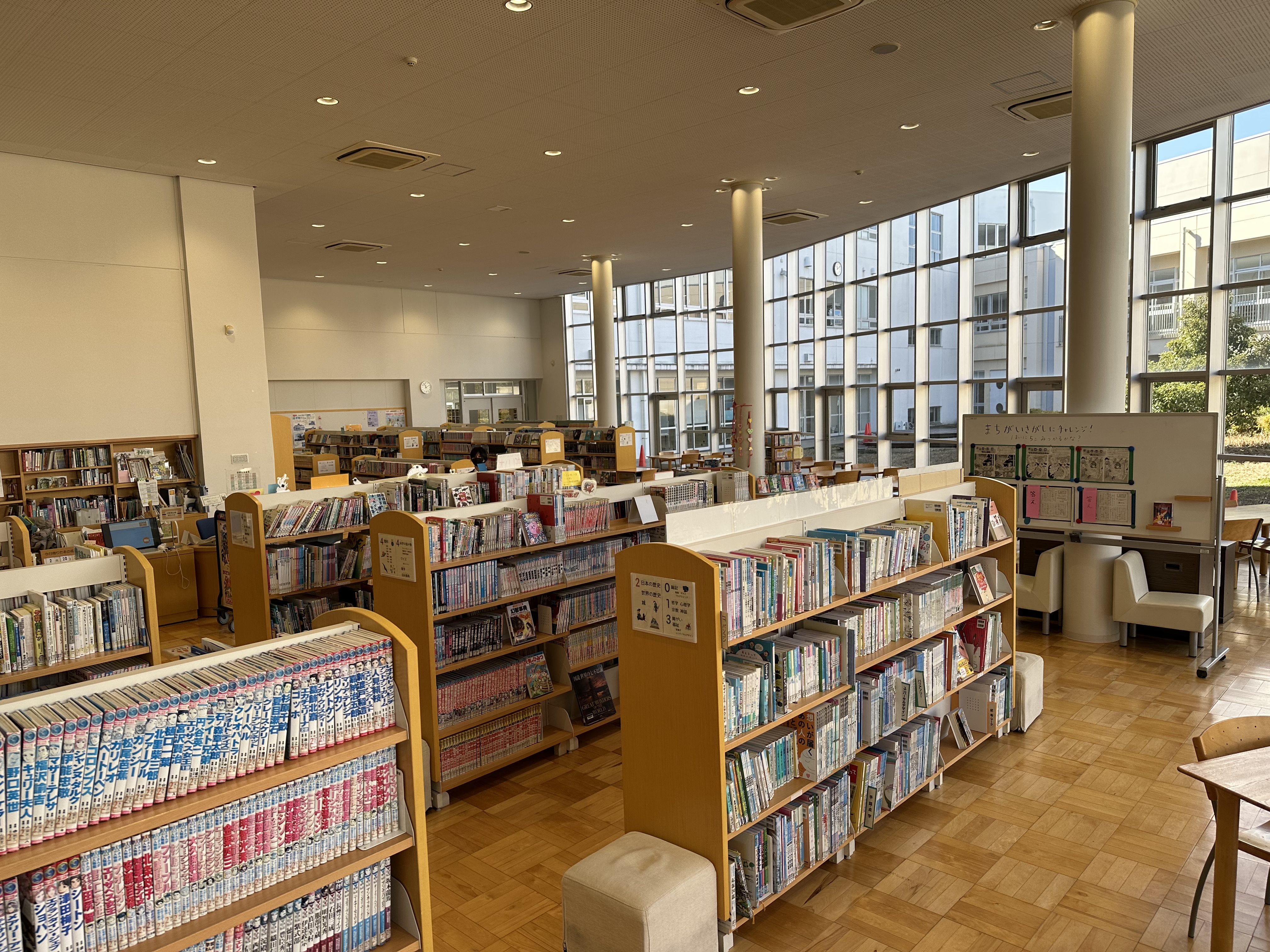 大きな窓がある開放的な図書館は、